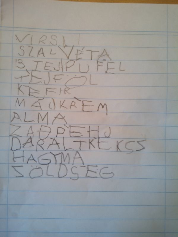 Vince első bevásárlólistájaVince első bevásárlólistája